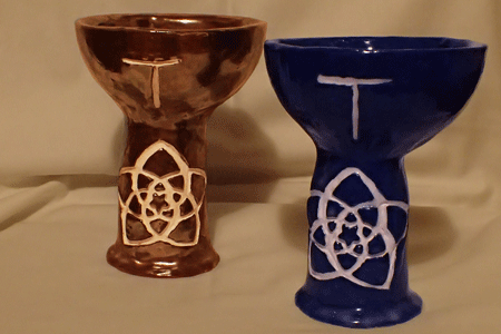 Du kannst solch einen Kelch bei uns bestellen. Es handelt sich bei jedem Stück um ein Unikat und um reine Handarbeit. Während wir, Susanne und ich, die Kelche formen und glasieren, sind wir mit den Anda Te in Verbindung.