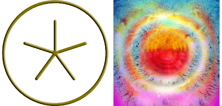 Das Frequenzbild vom Symbol Oos drückt diese Art der Schutzwirkung sehr schön aus. Die lichtvolle Urkraft erwacht im Zentrum, im Inneren. Das Licht dehnt sich von innen nach außen hin wirkungsvoll aus. |