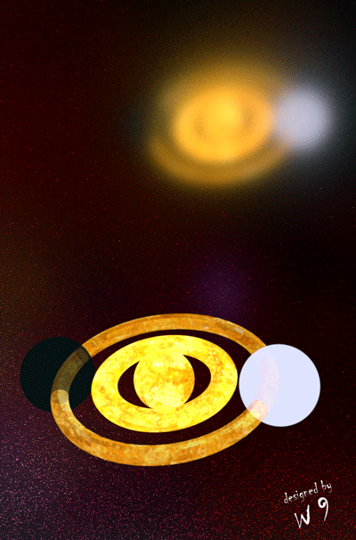 Der Punkt (die Kugel) in der Mitte mit dem umgebenden Kreis symbolisiert das „Ich“. Umgeben wird es von einem weiteren Kreis mit zwei weiteren Punkten (Kugeln). Das sind die polaren Kräfte, das „Lichte“ und das „Dunkle“.