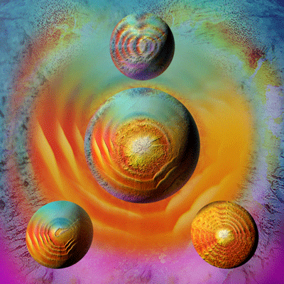 Aus Dreiklängen baut sich das Leben auf. Drei Urfrequenzen sind es, die deinem Wesen, deiner Seele zugrunde liegen. Wir haben eine Methode entwickelt, mit der wir aus deinem Geburtsdatum deinen persönlichen Dreiklang sichtbar machen können. Das ist das persönliche Frequenzbild, das wir nun auch in seiner planetaren Form darstellen können. Du siehst hier eine Darstellung des Dreiklangs des Dalai Lamas. In der planetaren Form befindet sich in der Mitte der gesamte Dreiklang als „Zentralplanet“. Die Farbschwingungen des Dreiklangs bilden auf der Oberfläche der Kugel eine planetare Struktur, die wie Berge und Täler aussehen.
