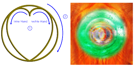 Nimm dann das zweite Symbol, das „La Ma Ra“. Es fördert deine Liebesfähigkeit, deine Fähigkeit, Wärme und Liebe auszustrahlen. Zeichne auch dieses Symbol bewusst dreimal.