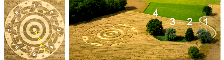 Zwei Tage nach der Aussendung des Newsletters wurde in Bayern, nahe dem Ammersee, ein Kornkreis entdeckt, der genau diese Symbolik darstellt, die 8 und die 4. Dieser Kornkreis spielt auf ein weiteres Thema an, auf den Weltenbaum.