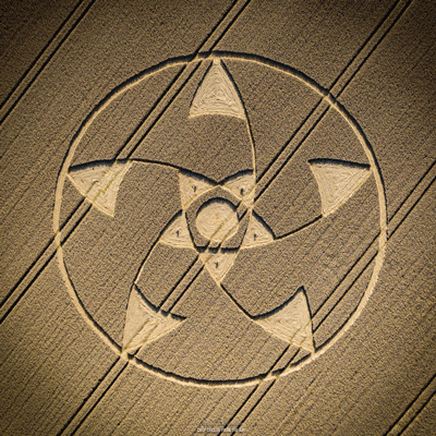 Der vergangene Vollmond war am 22. August. In dieser Nacht entstand in Südengland in der Nähe von Blandford Forum ein auffallender Kornkreis. Er sieht aus wie ein sich drehendes Rad mit fünf „Flügeln“. Die Zahl Fünf ist in den Kornkreisen stets eine Anspielung auf den Liebesplanes Venus (mehr Infos dazu kannst du hier nachlesen: http://neunercode.com/Venusblume/Venusblume.html ).