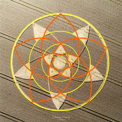 Wie sehr die Geometrie dieses Kornkreises mit der Geometrie der Venusblume übereinstimmt, ist auffallend (siehe nebenstehende Grafik).