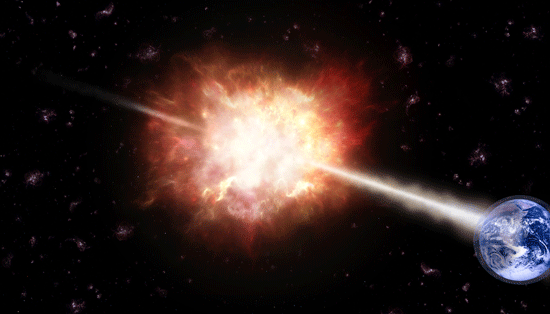 Gamma Ray Burst und Erde, bildhafte Darstellung,