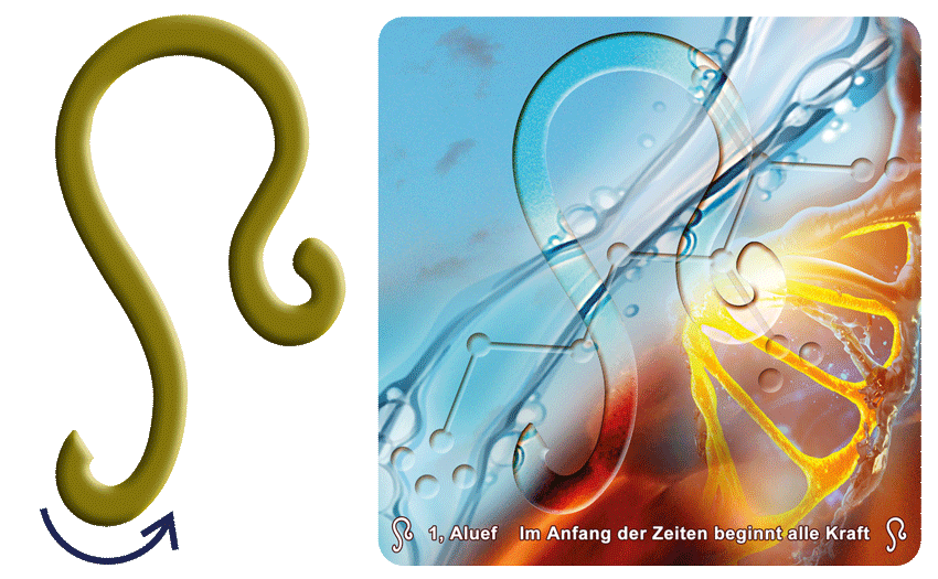 Hier siehst du das Symbol „Aluef“. Du entfaltest seine Wirkung, indem du es zeichnest, z. B. mit deiner Hand vor dich in den Raum. Sprich dabei die „Bewusstseinsformel“, die zu diesem Symbol gehört: