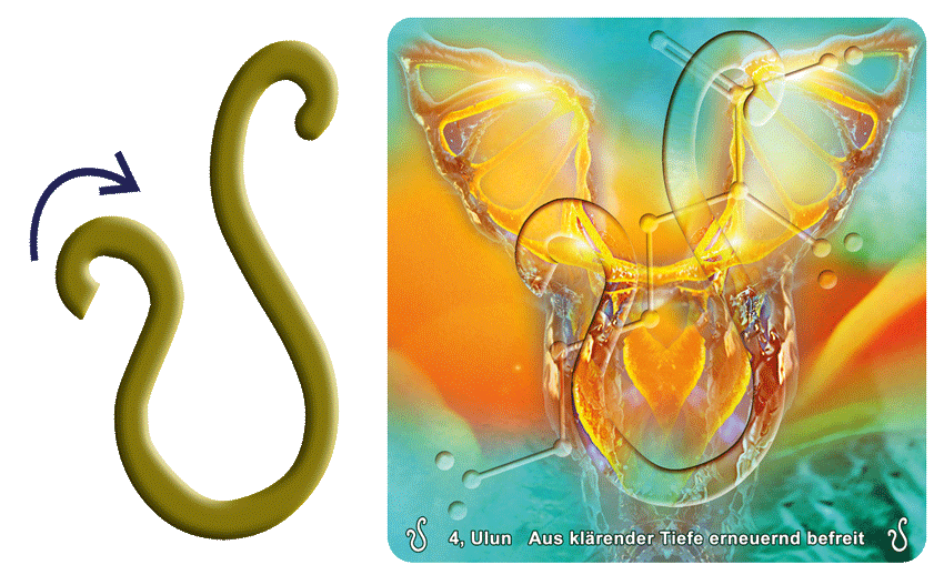 Das zweite Symbol wird „Ulun“ sein. Ulun führt dich in die Tiefe, dorthin, wo innere Themen geklärt werden wollen. Ulun hilft dir bei dieser Klärung.