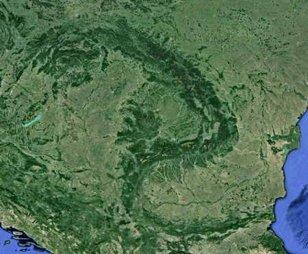 „Drachengestalt“ des Karpatenbogens, Foto aus Google Earth