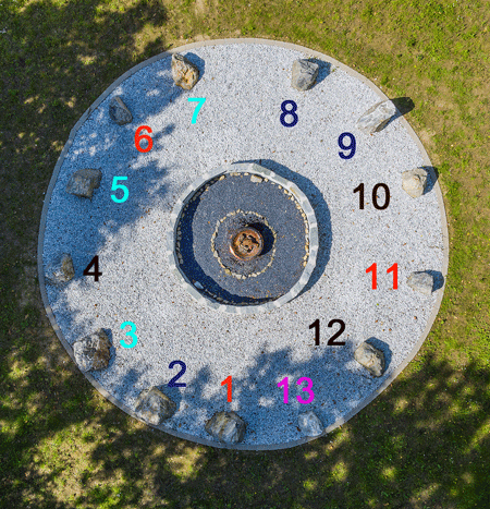 Wenn wir heute neue Steinkreise aufbauen, dann geht es vor allem darum, mit den Prozessen des Lebens wieder in einen friedlichen und gleichzeitig kraftvollen Einklang zu kommen. Es geht um die Heilung der Beziehung des Menschen mit der Urmutter, der Mutter Erde. Die Bedeutung der Dreizehn Um die Bedeutung der Zahl Dreizehn zu verstehen, müssen wir auch die Vorgängerzahl, also die Zwölf beleuchten. Es ist kein Wunder, dass besonders mächtige Institutionen die darauffolgende Dreizehn verteufelt haben, allen voran die katholische Kirche. Denn diese Dreizehn löst sämtliche Machtstrukturen wieder auf, indem sie die Ordnung der Zwölf wieder aufhebt. Die Dreizehn ist der Garant für Lebendigkeit, für Wandlung und Transformation, aber auch für die Auflösung jeglicher starrer Strukturen, welche die freie Dynamik zu unterdrücken versuchen. Wie du einen 13er-Steinkreis selber aufbauen kannst, findest du hier als Download: Einige bereits entstandene Steinkreise findest du hier: